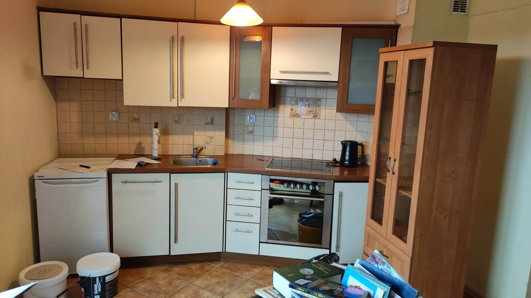 ● rysunek kuchni z układem szafek, elektryki i hydrauliki