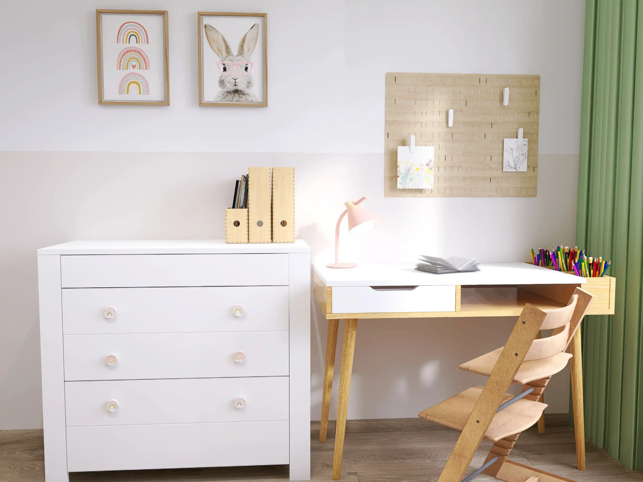 Wykonuję projekty wnętrz dziecięcych w Olsztynie i okolicach, a także oferuję współpracę online. Przygotowuję pełną dokumentację projektową, wizualizacje 3D, listy zakupowe oraz moodboardy z propozycją kolorystyki, dodatków i materiałów.
