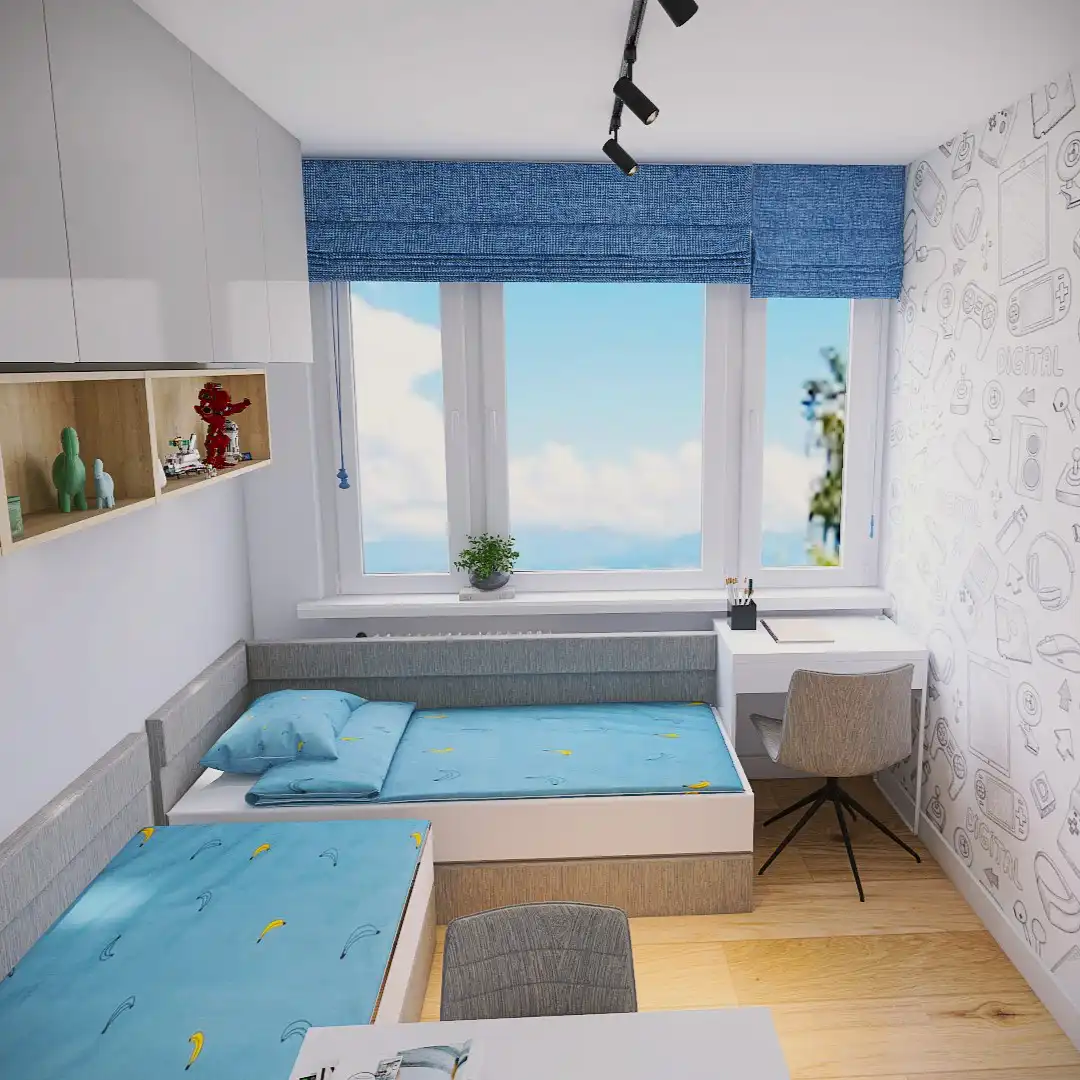 Każdy projekt pokoju dziecięcego traktuję indywidualnie – rozmawiam z rodzicami, ale też staram się poznać potrzeby i pasje małego mieszkańca. Dobieram materiały przyjazne dzieciom, ergonomiczne meble i przemyślane rozwiązania, które pomagają w organizacji przestrzeni. W zależności od wieku dziecka projektuję strefy do zabawy, nauki, snu i przechowywania, dbając o to, by pokój był przytulny, ale i praktyczny.